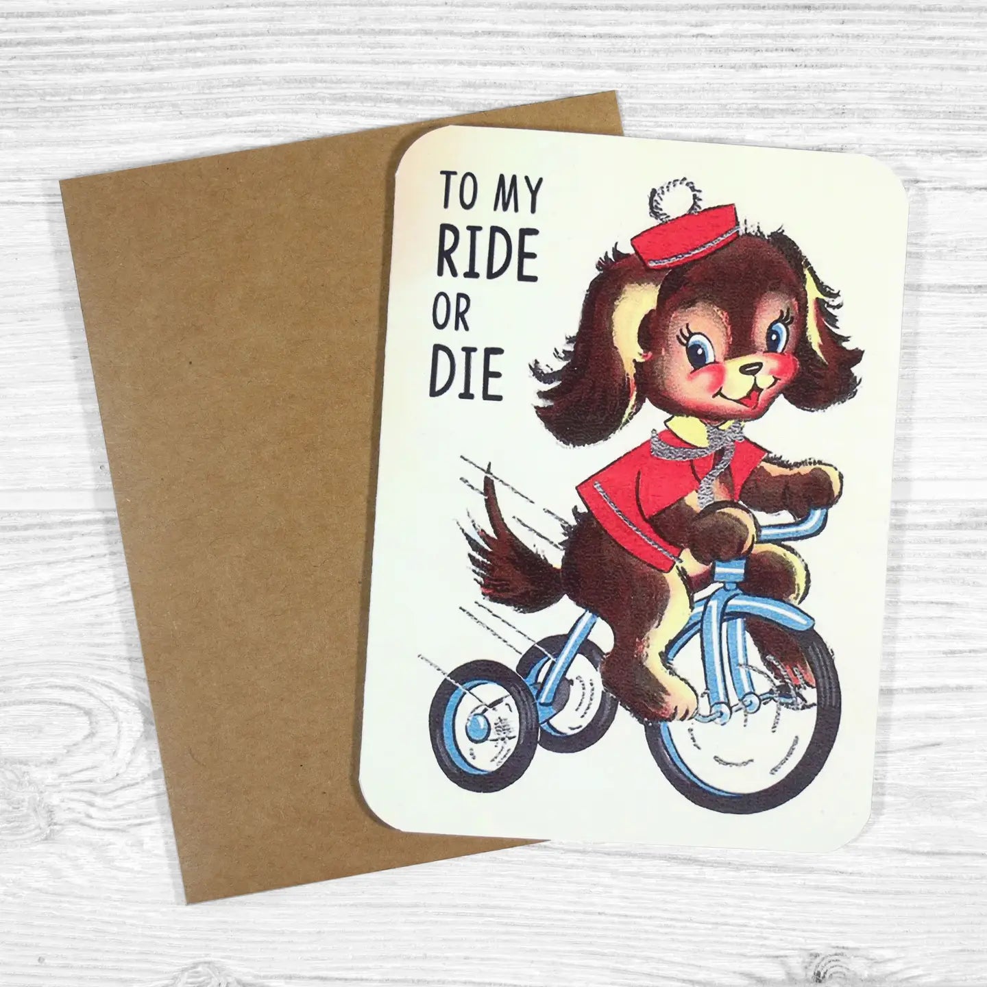 A cute vintage-inspired greeting card for your BFF "To My Ride or Die"